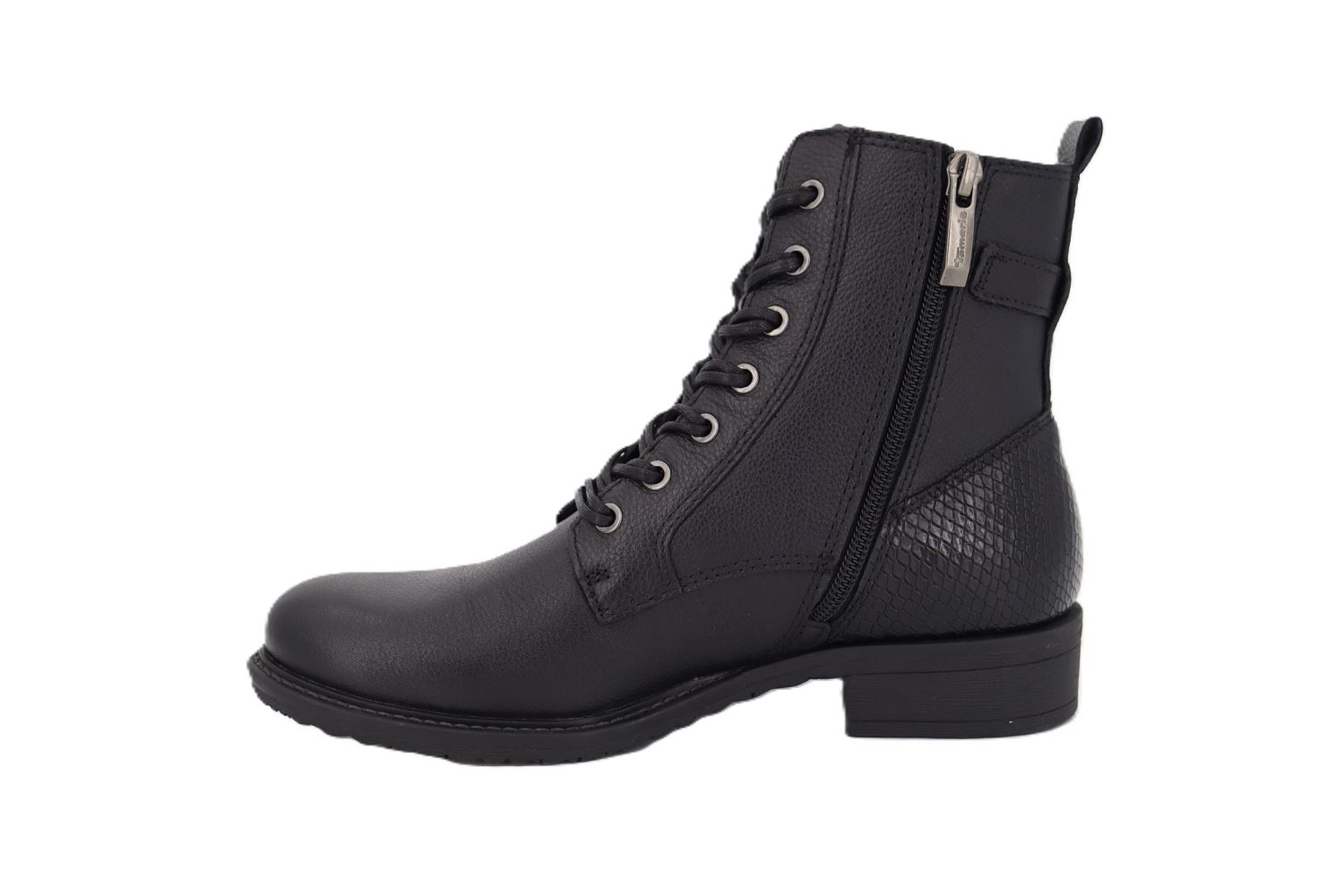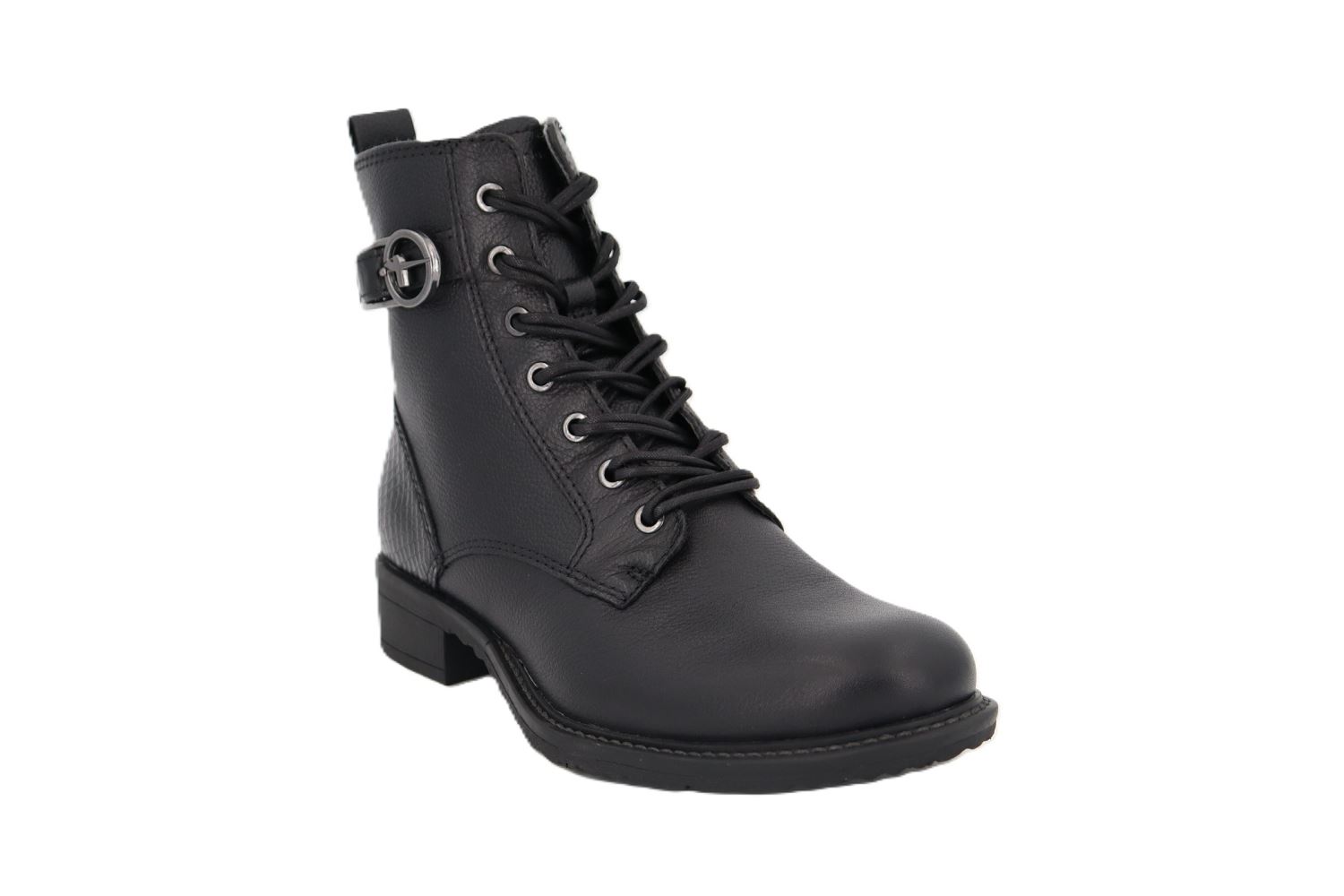Affirmez votre style avec la boot Tamaris 25262, un modèle à la fois moderne et confortable. Sa tige en cuir grainé est sublimée par une bride décorative métallique et un empiècement arrière effet reptile, pour une touche sophistiquée. Dotée d’un laçage ajustable et d’une fermeture zippée latérale, elle offre un enfilage facile et un maintien parfait. La semelle TOUCH-IT à mémoire de forme assure un confort durable. Polyvalente et chic, cette bottine noire complète avec élégance toutes vos tenues de saison.