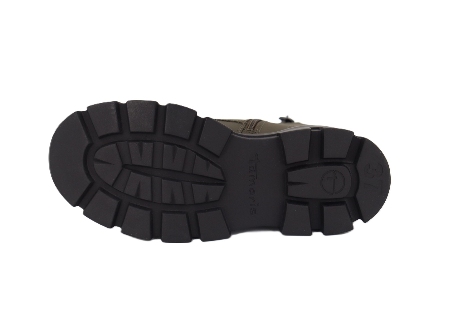 Optez pour un look affirmé avec cette bottine Tamaris vert olive à lacets, dotée d’une semelle XXL crantée ultra-tendance. Son design minimaliste et épuré est sublimé par une silhouette montante, parfaite pour donner du caractère à vos tenues d’hiver. Sa semelle plateforme assure un confort optimal tout en allongeant la silhouette. Un modèle moderne et stylé, idéal pour celles qui veulent allier style urbain et praticité.