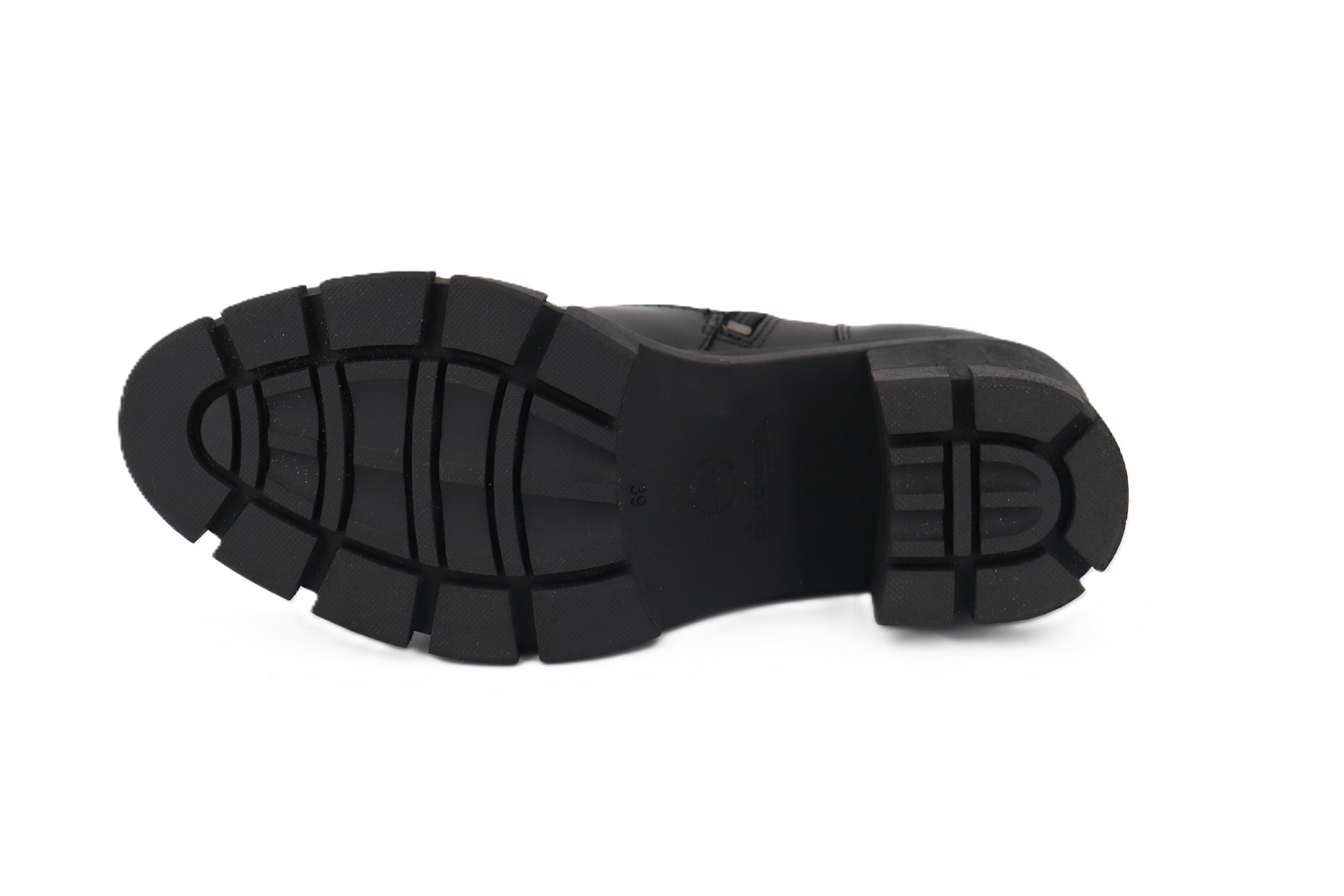 Alliant modernité et confort, la boot Tamaris 25407 séduit par son design épuré et audacieux. Confectionnée en cuir lisse, elle se distingue par sa fermeture zippée frontale qui lui confère un style contemporain et pratique. Son talon bloc de 7 cm et sa semelle crantée garantissent stabilité et confort de marche, tandis que la technologie TOUCH-IT épouse parfaitement la forme du pied. Parfaite pour un look urbain chic, cette bottine noire apporte une touche de caractère à toutes vos tenues d’automne et d’hiver.