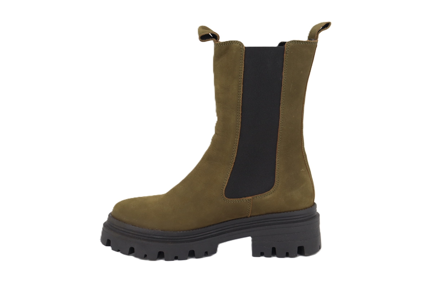 Affirmez votre style avec ces bottines Chelsea à la semelle crantée XXL. Modernes, tendance et ultra-confortables, elles apportent une touche affirmée à toutes vos tenues. Leur matière nubuck en vert olive offre une allure chic et casual, parfaite pour un look urbain contemporain. Faciles à enfiler grâce aux élastiques latéraux, elles sont idéales au quotidien et assurent une démarche stable grâce à leur semelle plateforme robuste.
