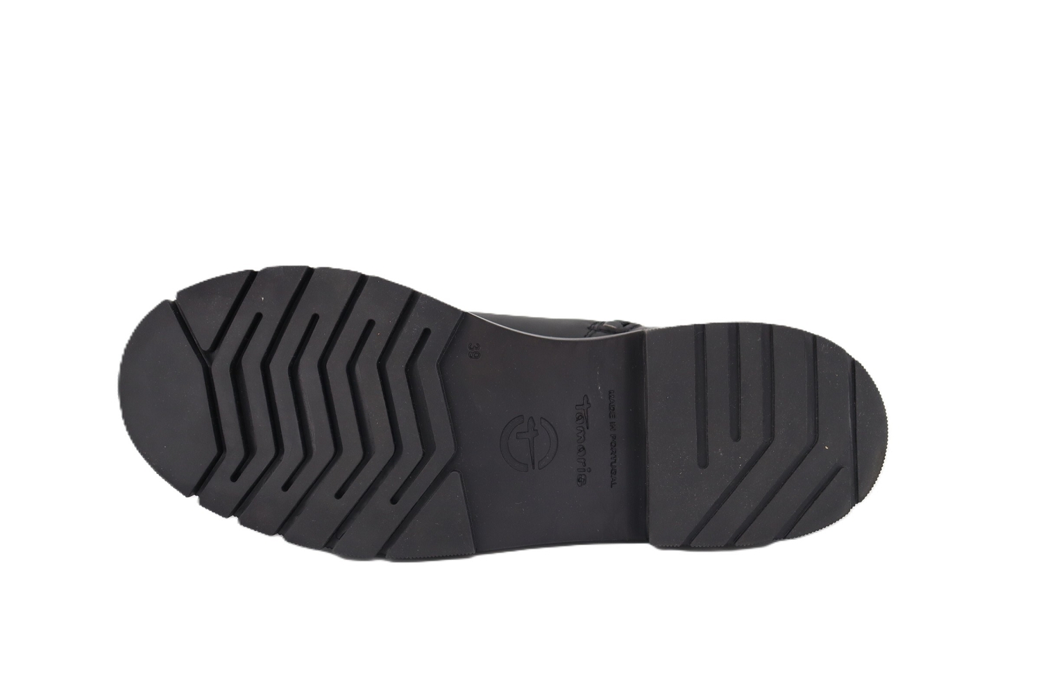 Adoptez un style urbain et intemporel avec cette bottine Tamaris 25861 en cuir noir. Dotée d’un laçage classique et d’un zip latéral, elle offre un enfilage facile tout en garantissant un maintien parfait. Son cuir souple assure un confort durable, tandis que la semelle crantée apporte stabilité et caractère à votre silhouette. Parfaite pour affronter le quotidien avec style, cette bottine associe allure moderne et praticité. Portez-la avec un jean slim ou une jupe midi pour un look tendance et affirmé, du matin jusqu'au soir. Un indispensable de la garde-robe automne-hiver !