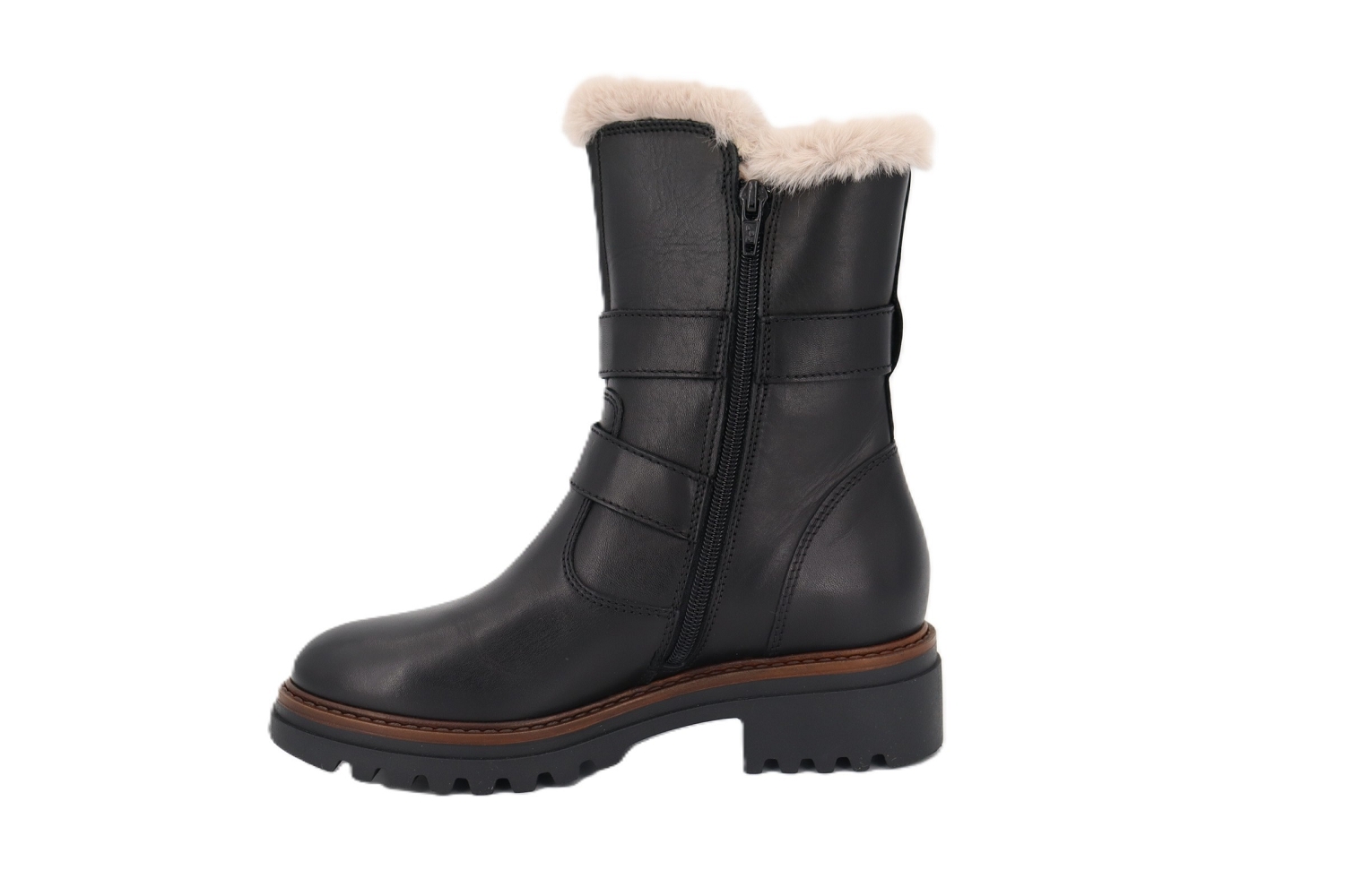 Alliant confort et style, cette boots en cuir noir Tamaris est idéale pour affronter la saison froide. Sa doublure en laine procure chaleur et douceur, tandis que sa semelle souple assure un maintien et un confort optimal à chaque pas. Avec son design épuré et sa finition soignée, elle se porte facilement au quotidien et apporte une touche moderne et élégante à toutes vos tenues.