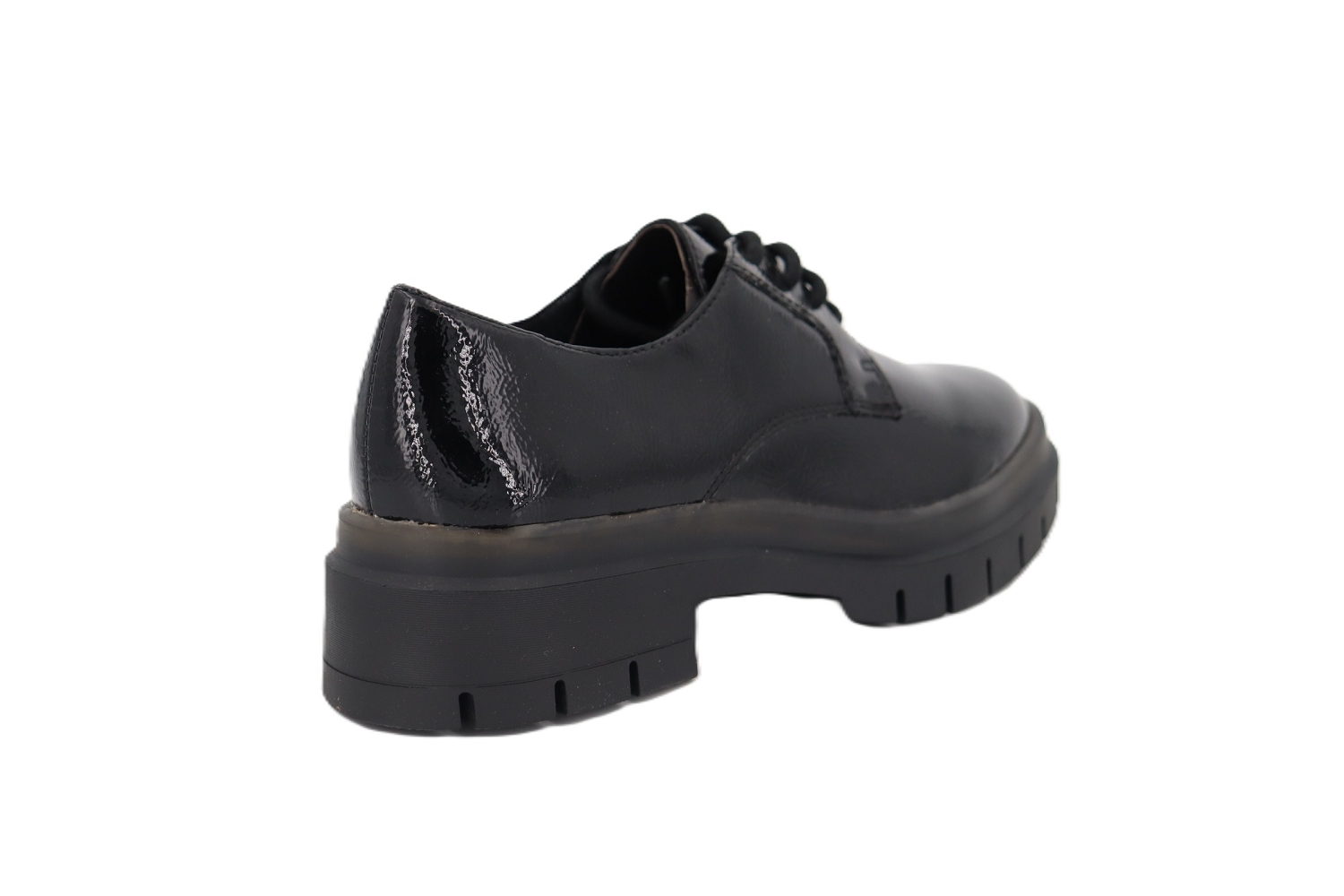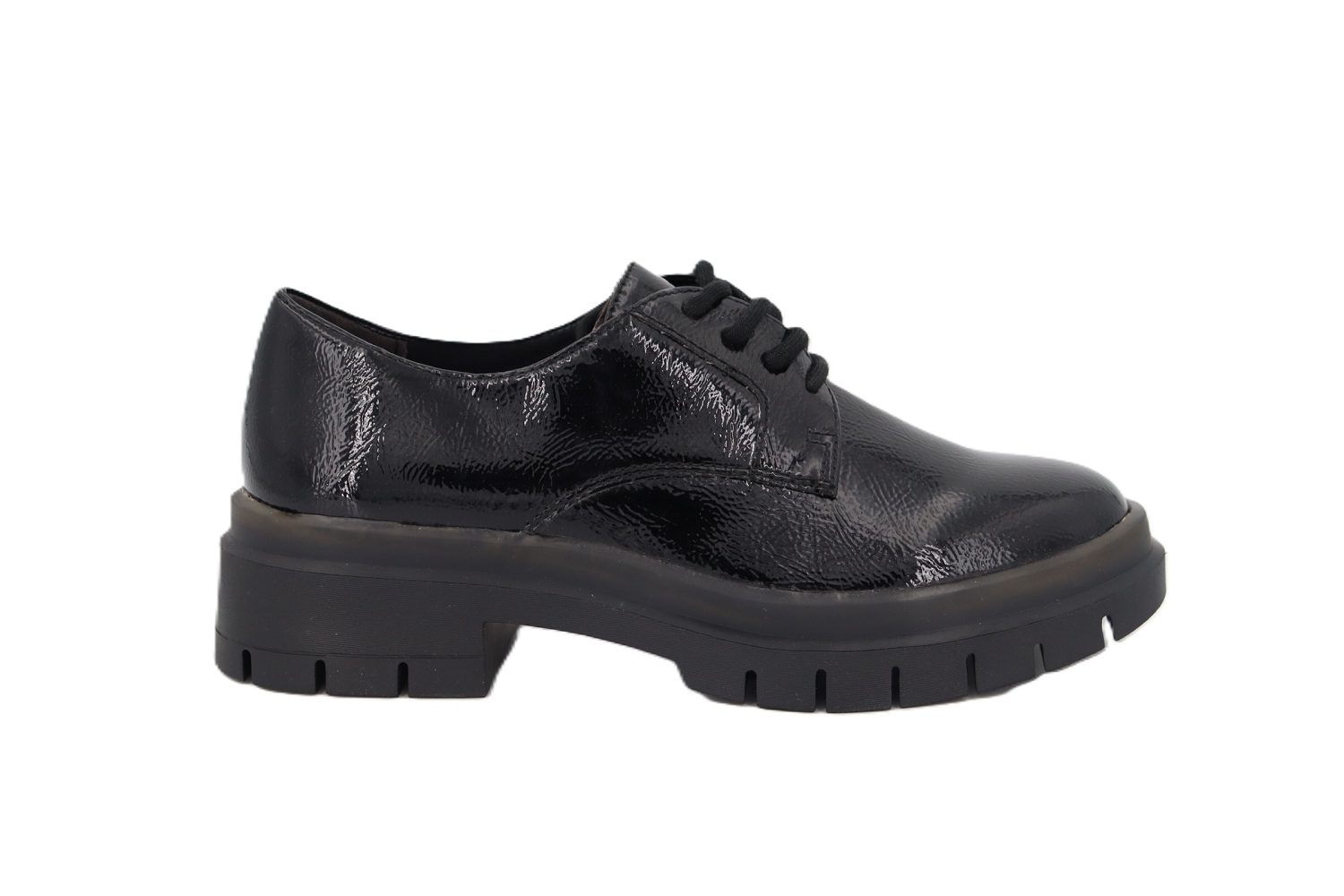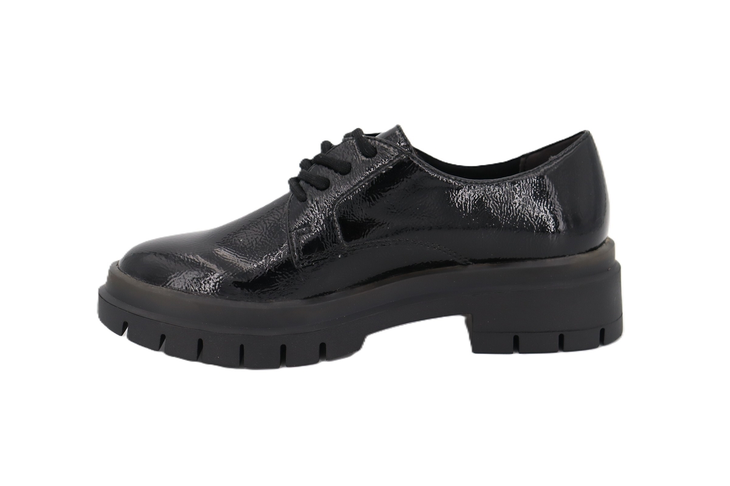 Optez pour un style chic et affirmé avec la derbies Tamaris 23726. Confectionnée en matière synthétique vernie, elle séduit par son effet texturé brillant et sa semelle crantée épaisse au look moderne. Son laçage classique assure un bon maintien, tandis que la semelle intérieure TOUCH-IT en mousse mémoire garantit un confort exceptionnel tout au long de la journée. À la fois élégante et tendance, cette derbies noire se porte aussi bien avec un pantalon habillé qu’un jean pour un look urbain sophistiqué et confortable.