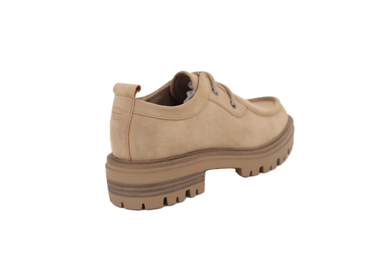Les derbies Tamaris 23741 revisitent le style classique avec une touche moderne et décontractée. Réalisées en matière effet suédine douce, elles séduisent par leur couleur beige lumineuse et leur semelle épaisse crantée ultra tendance. Légères et confortables, elles sont dotées de la technologie TOUCH-IT qui s’adapte à la forme du pied pour un bien-être optimal tout au long de la journée. Polyvalentes et stylées, ces chaussures s’accordent aussi bien avec un jean qu’un pantalon habillé, parfaites pour un look chic et contemporain.