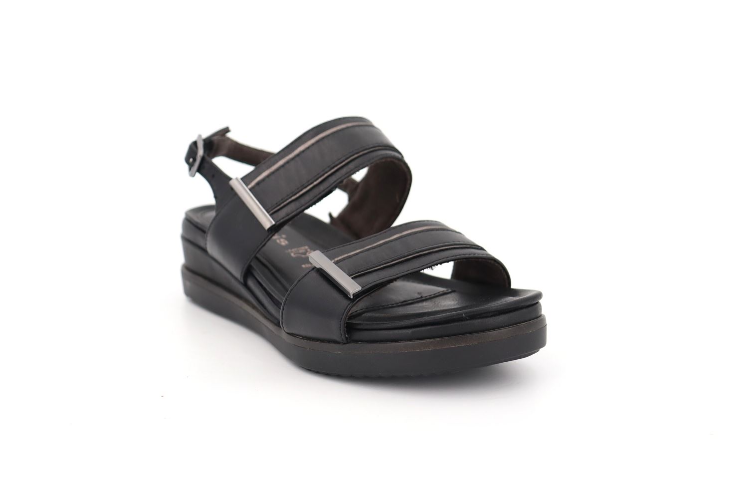 Alliant confort et élégance, ces sandales en cuir noir de chez Tamaris sont idéales pour un usage quotidien. Dotées de deux brides à scratch et d'une boucle réglable à l'arrière, elles offrent un ajustement parfait. Leur semelle intérieure amovible permet d'insérer une semelle orthopédique pour un confort sur-mesure. Un choix pratique et raffiné pour allier style et bien-être au quotidien.