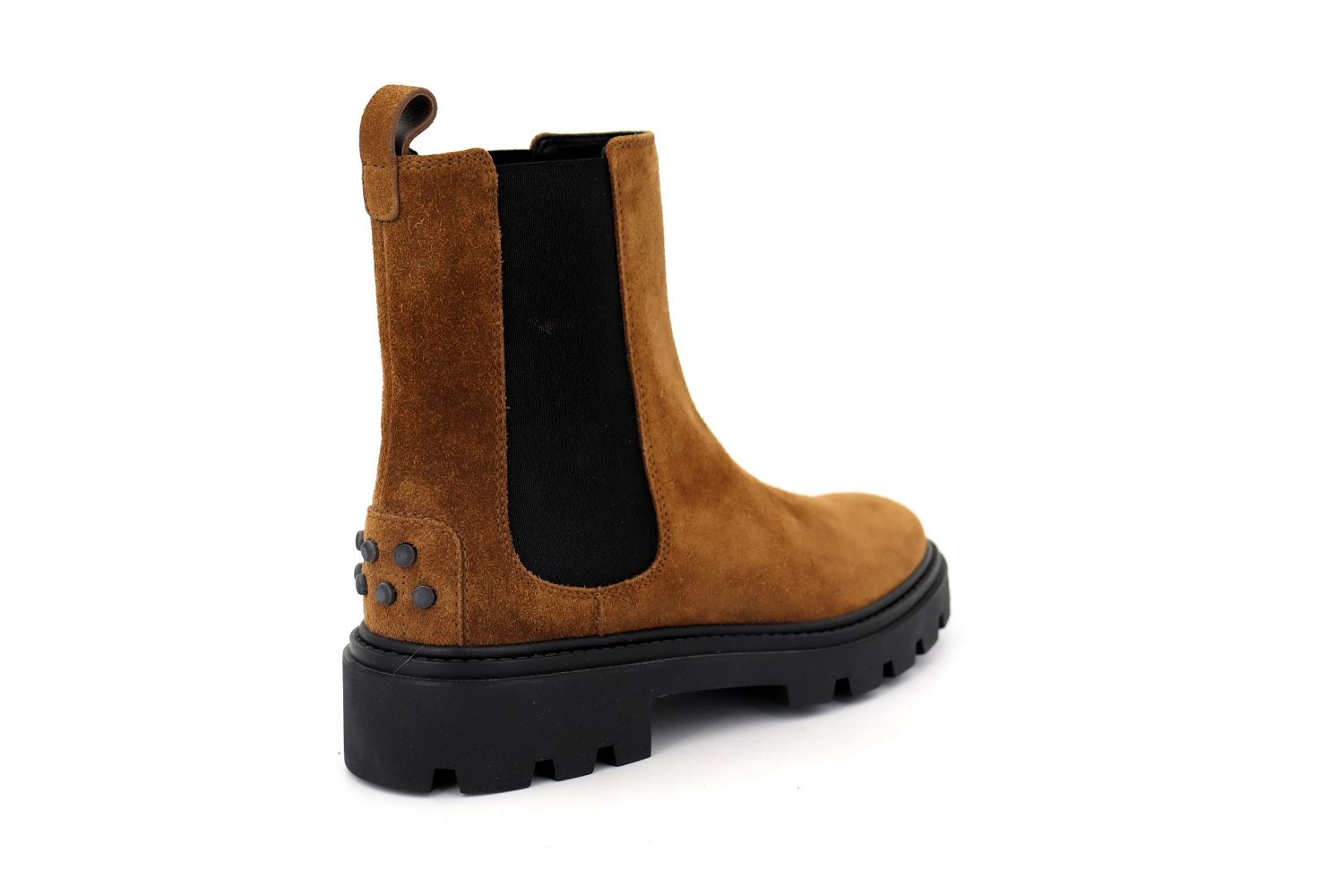 La chelsea boot Verso pour femme de la maison Tod's en cuir velours, avec semelle crantée en gomme. Un passe-partout urbain raffiné, à la silhouette minimale et intemporelle, avec les iconiques gommini au dos.