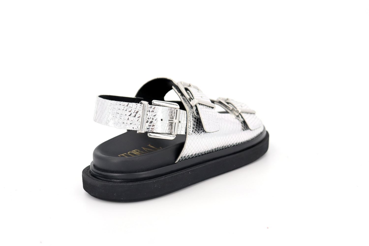 Vous voulez des sandales argent pour cet été ? Vous avez de la chance, car nous avons le modèle parfait pour vous. Le modèle Renata de chez Toral fabriquées en Espagne, avec une touche amusante et unique qui vous fera vous sentir bien et à la mode. La sandale dispose d'une boucle à l'arrière qui s'adapte à votre pied, et d'une semelle intérieure en cuir. Elle est parfaite pour l'été !