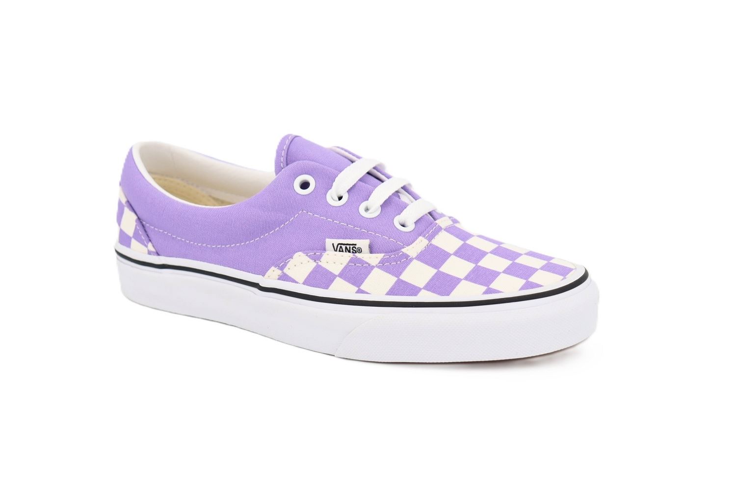 La basket femme Era Checkerboard de chez Vans séduit par son look fun et graphique, grâce à son imprimé damier violet et blanc emblématique. Conçue en textile léger, elle offre un excellent confort au quotidien, complété par un laçage blanc contrastant et la semelle extérieure blanche signature Vans assurant adhérence et stabilité. Une sneaker pleine de caractère, idéale pour apporter une touche tendance et colorée à vos tenues.