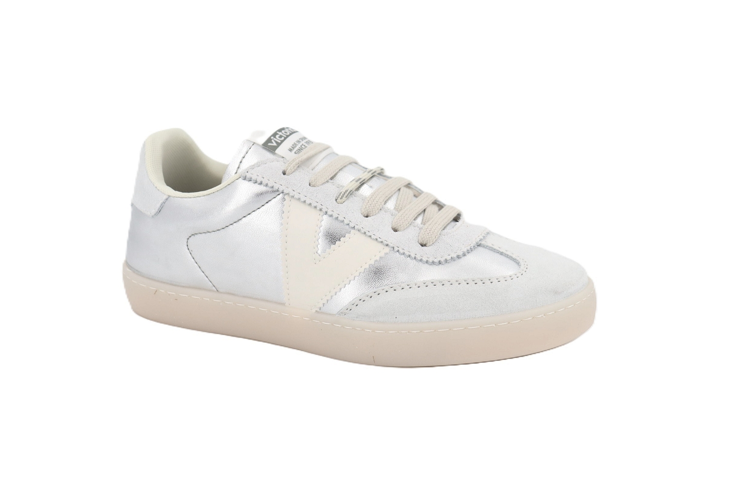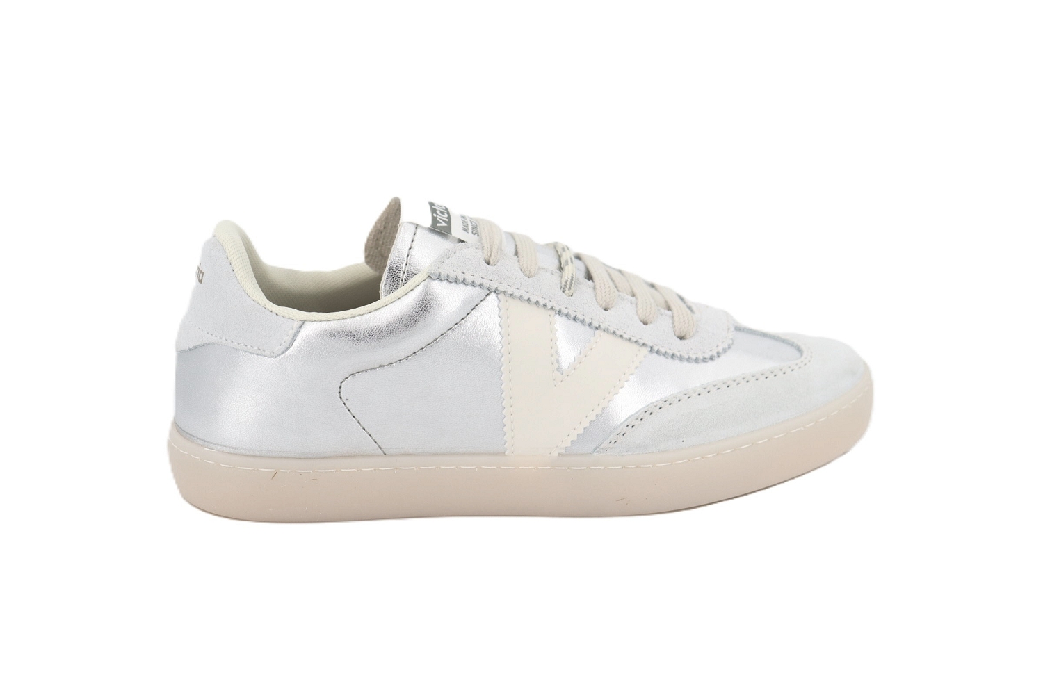 La basket BERLIN METAL de chez Victoria illumine vos looks avec son cuir argent au fini légèrement métallisé, parfait pour apporter une touche moderne et tendance. Sa silhouette épurée, associée à des empiècements en suède clair et au célèbre « V » iconique sur le côté, crée un équilibre subtil entre élégance et esprit casual. Confortable et facile à porter au quotidien, cette sneaker repose sur une semelle souple et résistante, idéale pour accompagner toutes vos envies de style. Un modèle phare pour celles qui aiment allier originalité, confort et intemporalité.